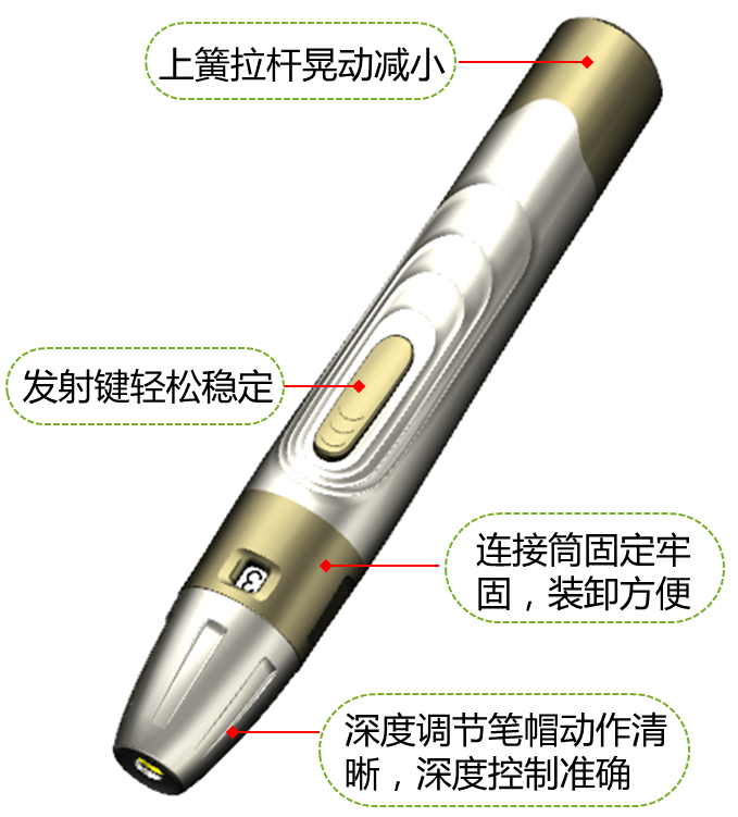 笔帽内芯弹性结构设计减少采血针晃动,有效降低痛感